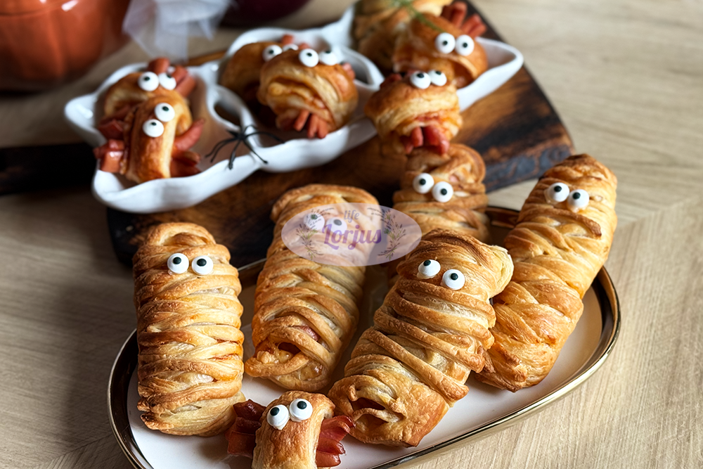 Nedidelė šiandienos Helovino repeticija vaikų buvo įvertinta labai gerai. Na, bet to ir tikėjausi. Juk kam nepatiktų mumijos ir aštuonkojai iš sluoksniuotos tešlos, dešrelių ir sūrio?