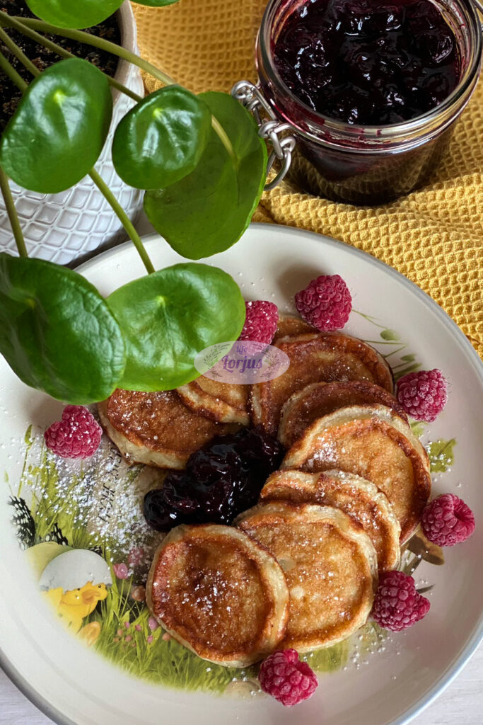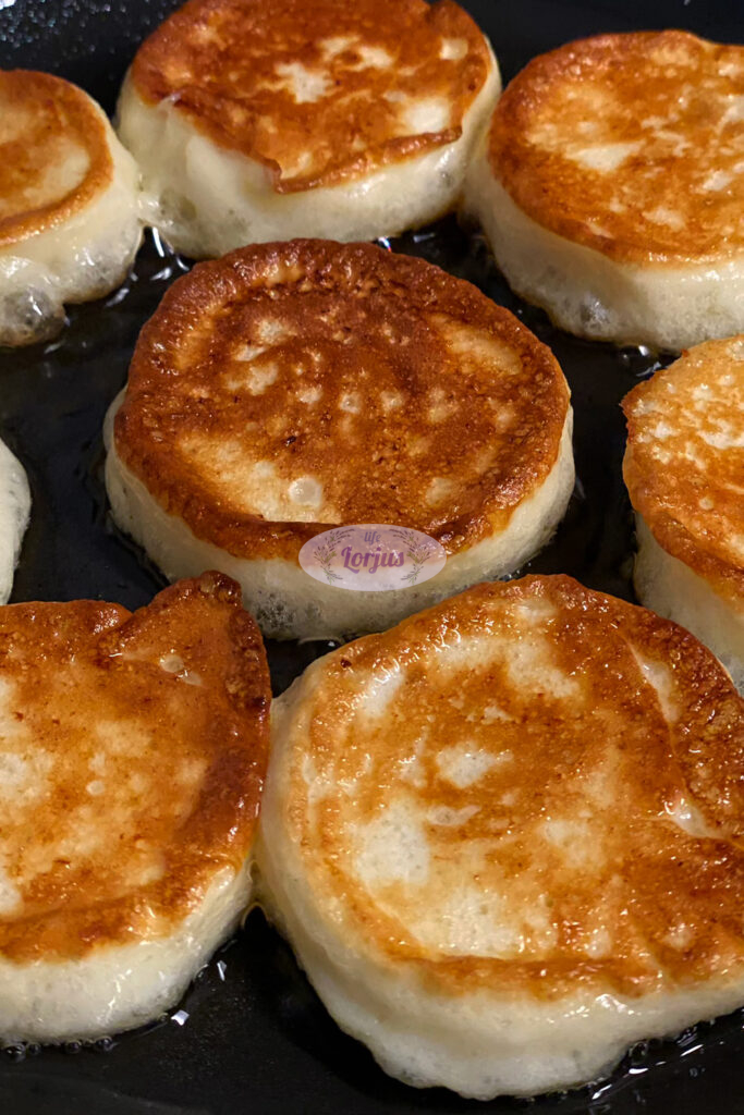 - Pilame po nepilną šaukštą tešlos suformuodami blynelius.