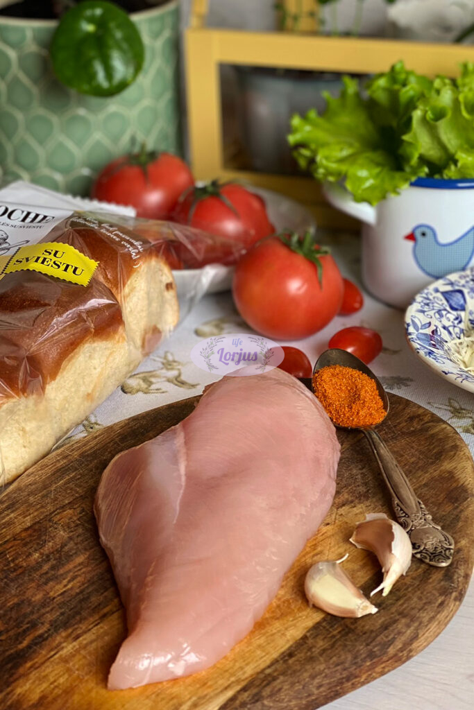 - Brioche plėšomų bandelių sumuštiniai su pomidorais, sūriu ir vištiena, paruošti. Plešiame ir skanaujame, skanaus!