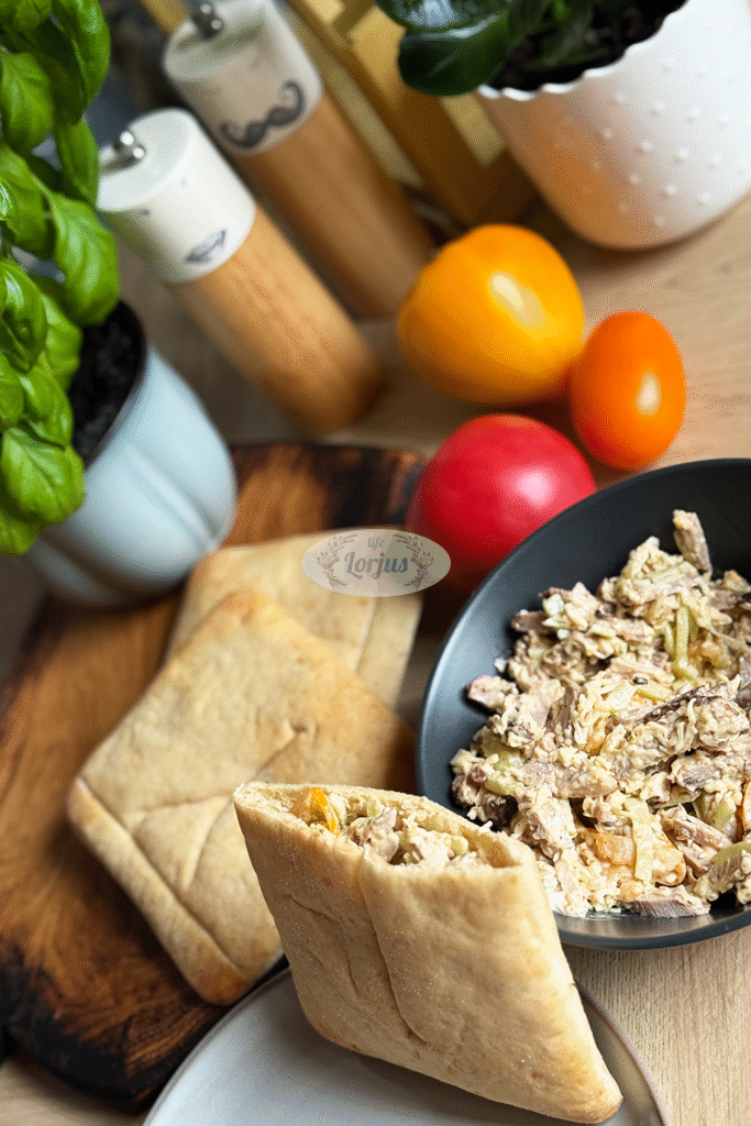 Paprastai, jei iš po vakar lieka keptų šašlykų, sekančią dieną gaminu savo firminius, tokius labai paprastus, tačiau labai skanius sumuštinius – ant baltos forminės duonos riekelės užtepu truputį majonezo, dedu pjaustytus šašlykus ir ant viršaus pomidorų griežinėlius. Šį kartą irgi būčiau gaminusi taip pat, bet šaldytuve turėjau “Kišenėlių”, tokių duonelių skrudinimui, kurias jau reikėjo sunaudoti. Iš agurkų, pomidorų, sūrio ir keptų šašlykų pasigaminau įdarą, kuriuo įdariau kišenėles. Beje, toks įdaras tiktų ir tortilijų suktinukams. Gavosi labai skaniai, šeimynai patiko.