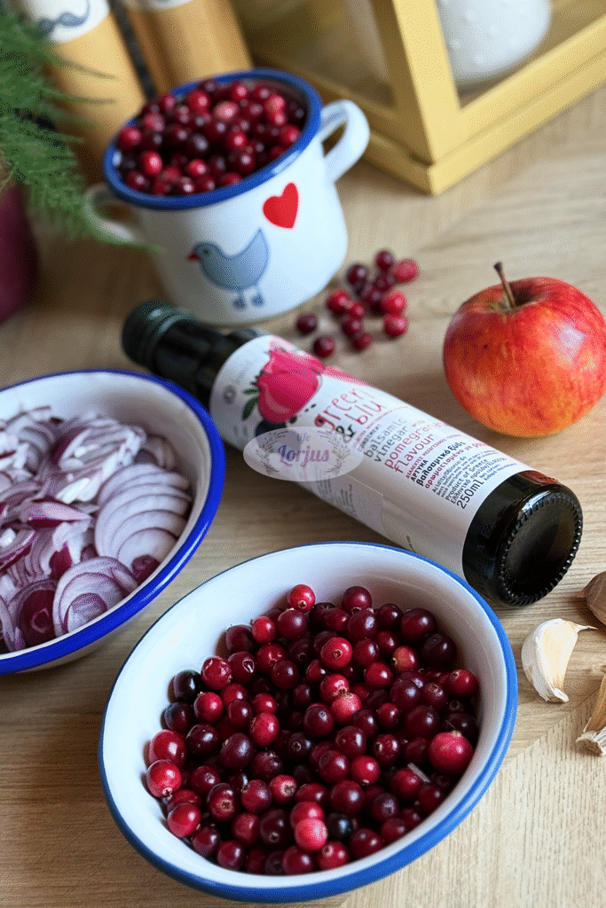 Svogūnų ir spanguolių padažui pagaminti reikės: