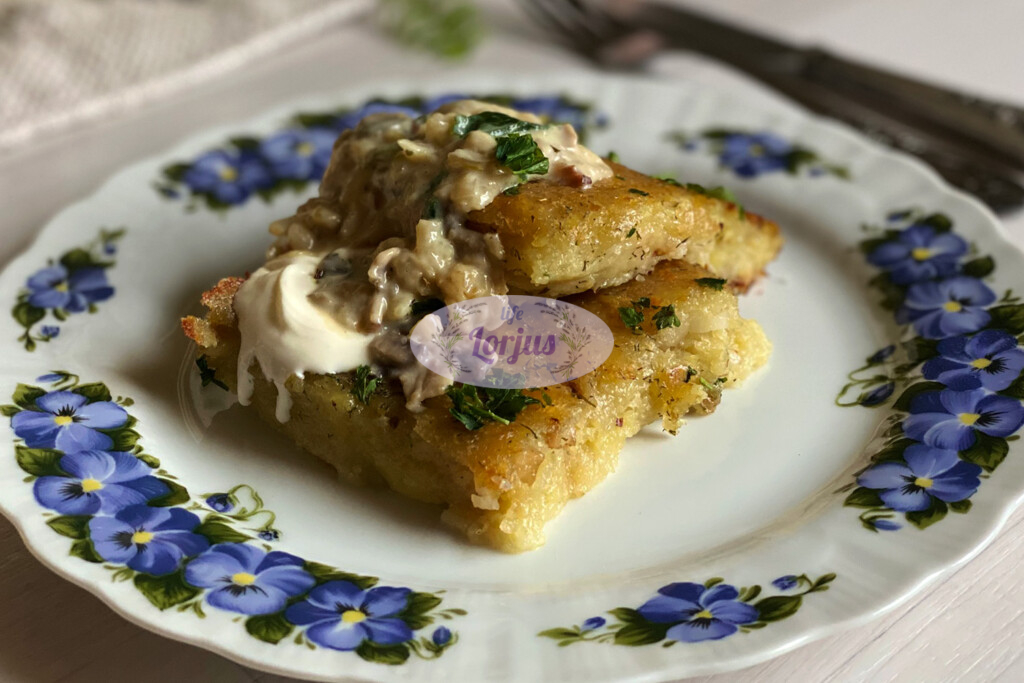 O buvo taip – lauktuvių gavau rūkytų lašinukų be raumenuko, mūsų šeimyna nelabai tokius mėgsta, tad galvojau kur juos būtų galima skaniai sunaudoti. Prisiminiau senoje receptų knygoje matytą, bet taip ir neišbandytą bulvių plokštainio su lašinukais receptą, nusprendžiau pabandyti, juolab, kad ingredientai reikalingi kugeliui labai paprasti.