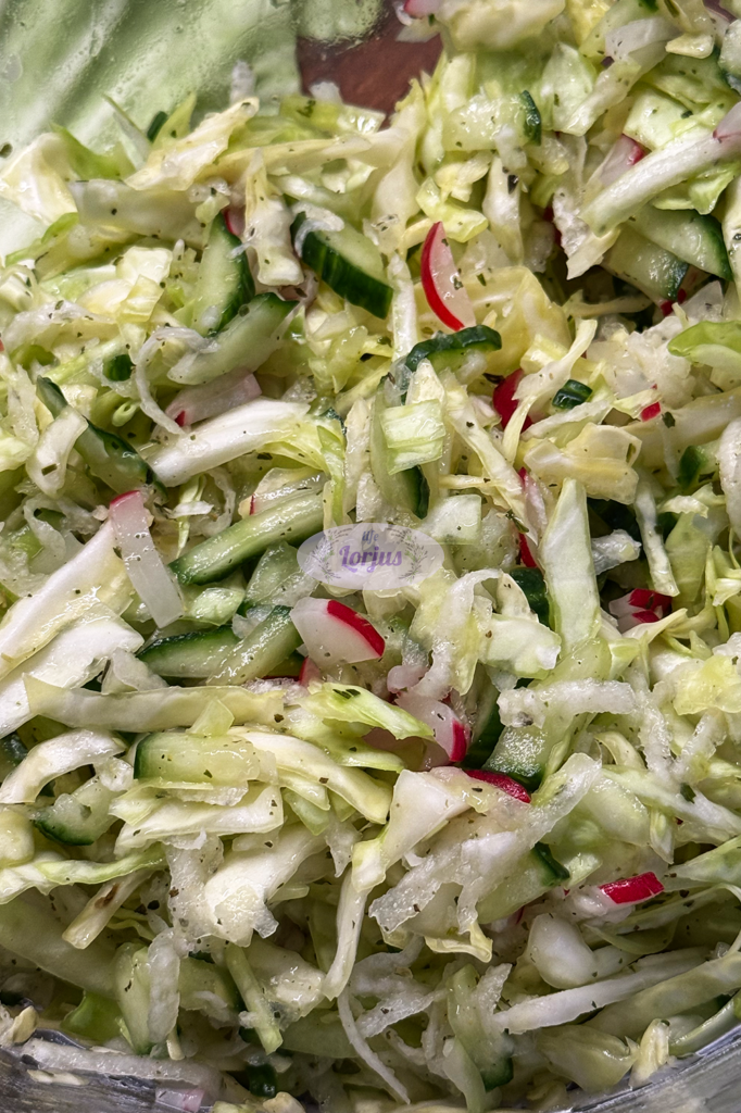 Būna dienų, kai virtuvėje viskas vyksta ne pagal planą, bet rezultatas viršija visus lūkesčius. Šiandien gaminau savo mėgstamas traškias daržovių salotas ir tik paskutinę minutę supratau – šaldytuve nei lašelio graikiško jogurto ar grietinės.