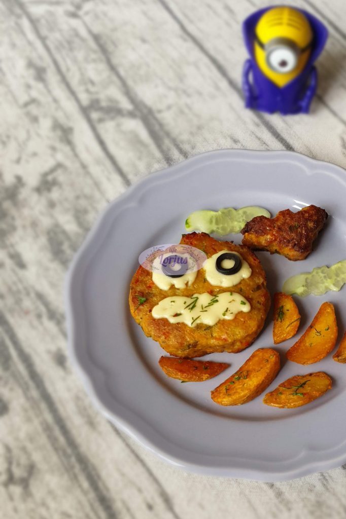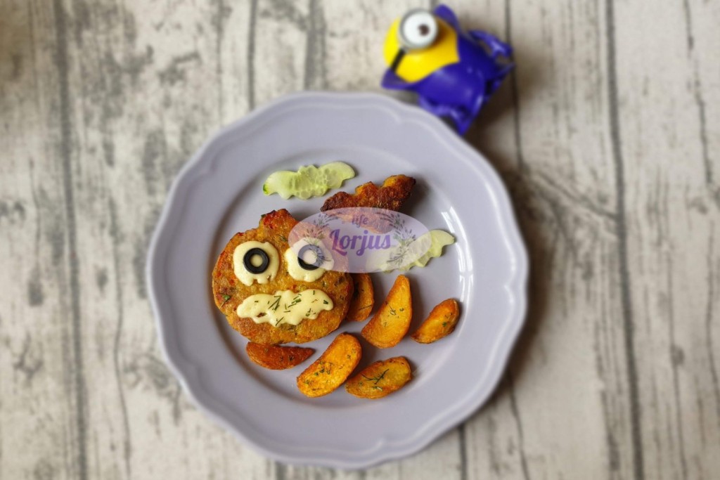 Šiandien, turėdama laisvadienį, iš mokyklos grįžtančio sūnaus laukiau su tokiais žaismingais pietumis. Vyresnėlio ant pietų stalo laukė orkaitėje kepti kotletukai “Moliūgai-monstriukai”.