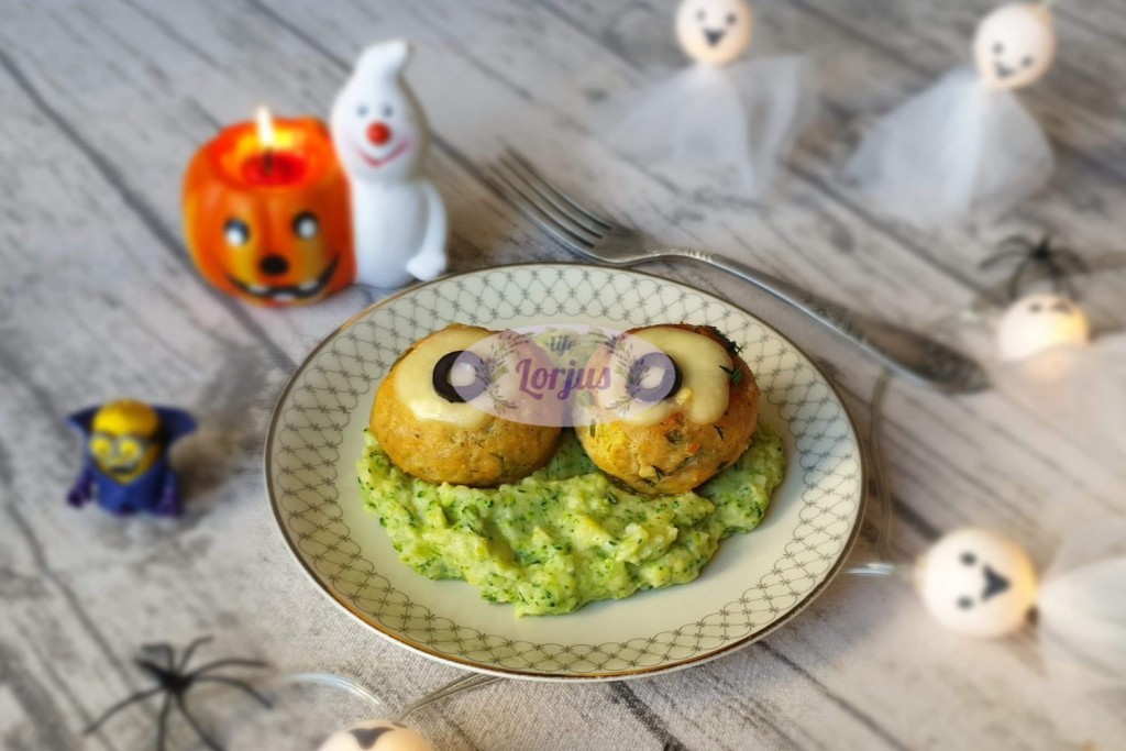 Šiandien sugalvojau nustebinti vaikus patiekdama jiems tokią, truputėlį monstrišką vakarienę. Džiaugiuosi, kad mano pastangos buvo įvertintos puikiai, nes vaikams labai patiko troškinti maltos kiaulienos kukulaičiai įdaryti putpėlių kiaušiniais ir patiekti su kiek neįprastos spalvos bulvių koše.
