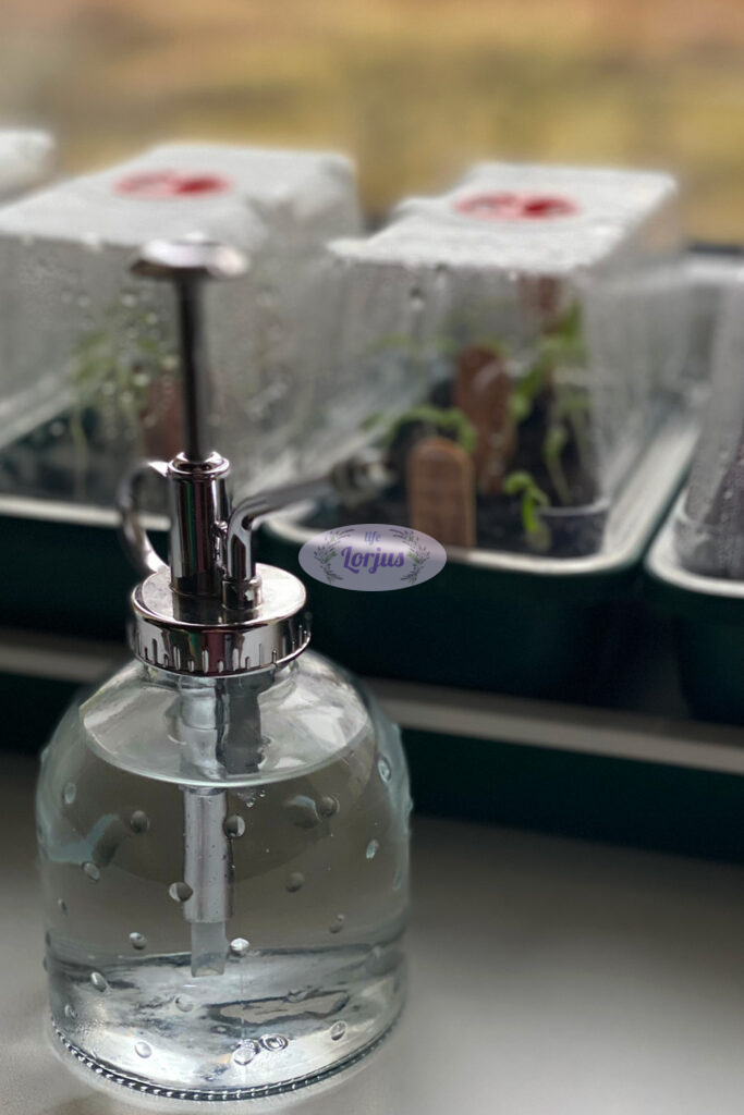 - Daigyklą pripildau durpių substratu daigams, jį sudrėkinu vandens purkštuku.