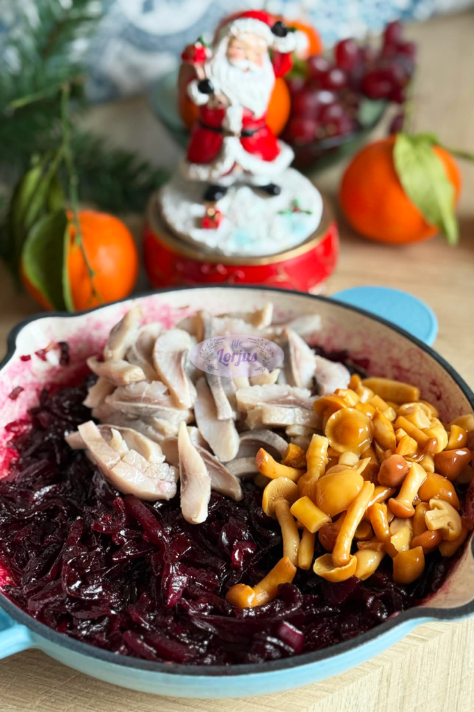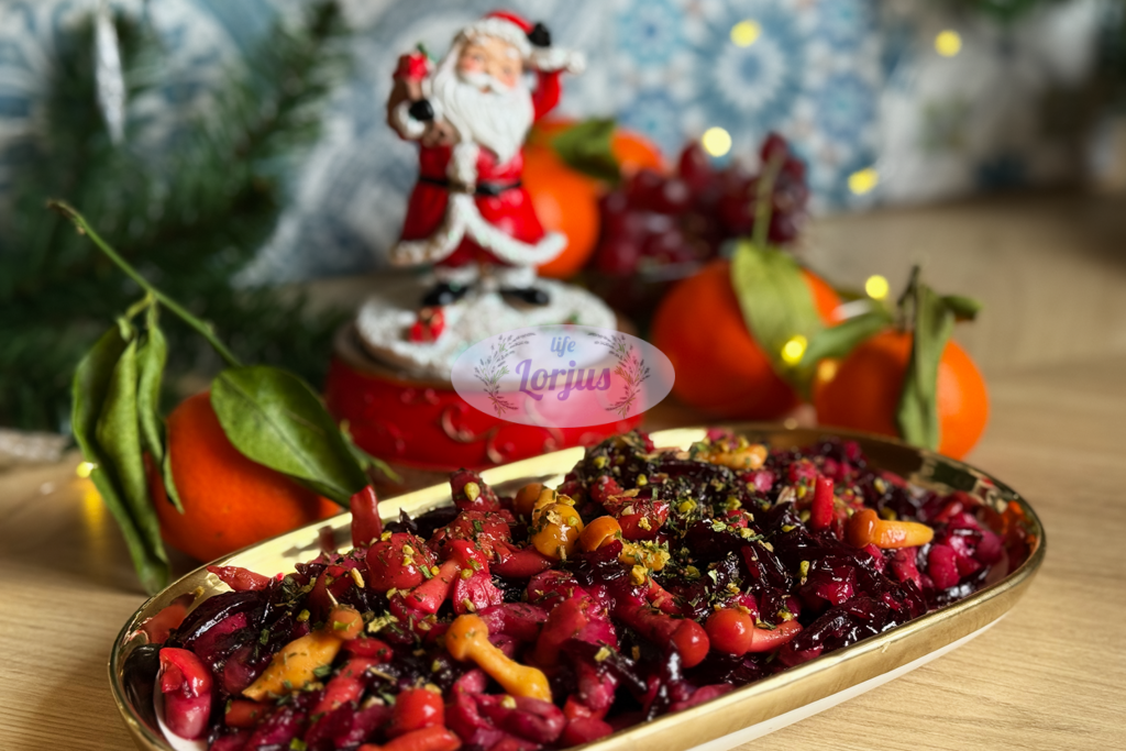 Gardi silkė su burokėliais ir kelmučiais, be majonezo, tad tiks ir artėjančių kūčių stalui.