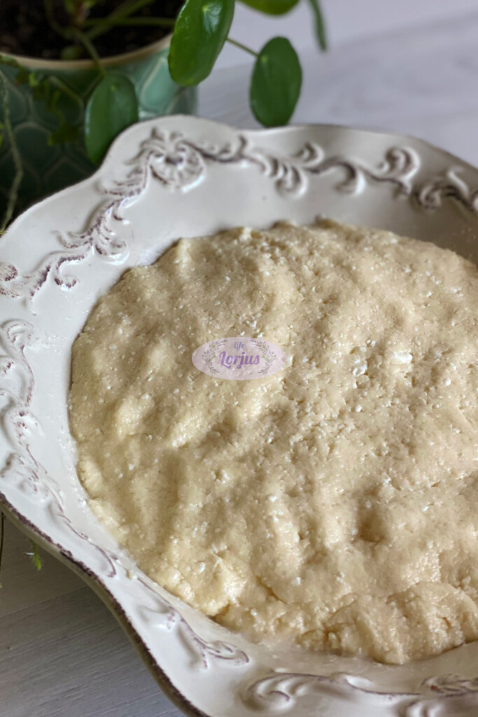 - Užminkytą tešlą patepame aliejumi ir paliekame maždaug 15 minučių pastovėti.