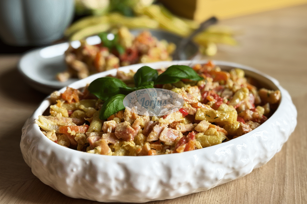 - Keptų šparaginių pupelių salotos su rūkyta vištiena paruoštos, skanaus!