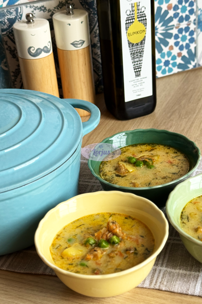 Yra dienų, kai norisi tiesiog lėkštės šilumos ir ramybės. Ši švelni vištienos ir žirnelių sriuba būtent tokia – lengva, bet kartu ir labai soti. Jau turėjote pastebėti – turiu savo mažą paslaptį, kad mėsos skonis nebūtų nuobodus, pačioje sriubos gaminimo pradžioje, vištieną trumpai pamarinuoju su česnaku, prieskoniais ir ypač tyru alyvuogių aliejumi. Mano favoritas šiuo metu Kalamata PDO ypač tyras alyvuogių aliejus „Elinikon“. Šis tiesiai iš Graikijos atkeliavęs aliejus yra vienas švelniausių, kokius tik teko naudoti. Jis neturi intensyvaus aitrumo ar kartumo, todėl idealiai tinka būtent tokioms sriuboms.