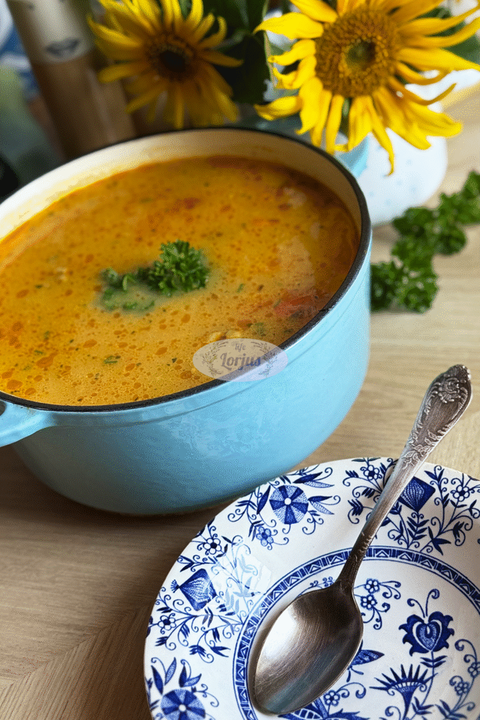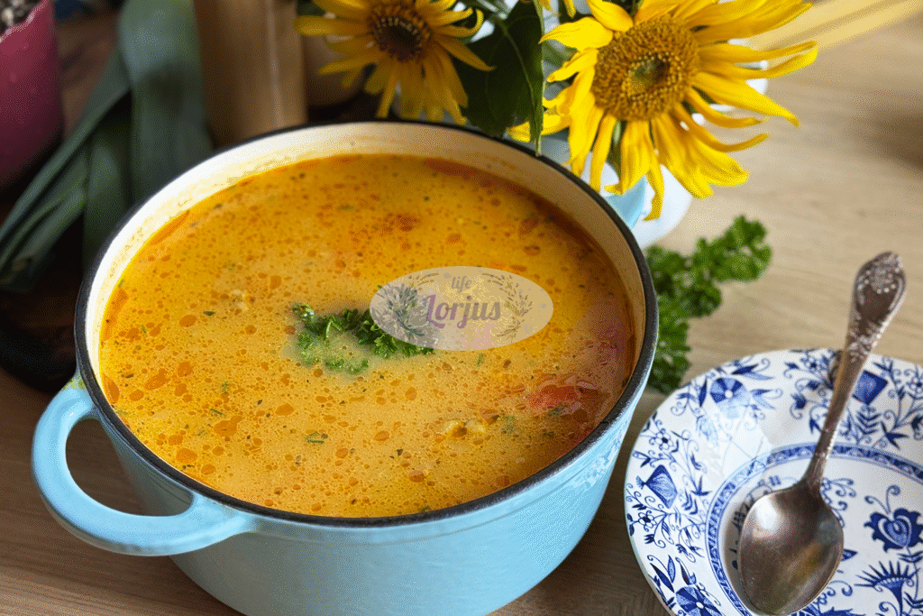 - Šviežių kopūstų sriuba su lydytu sūreliu ir vištiena paruošta, skanaus!