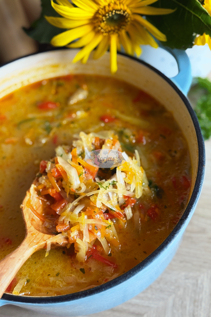 Sriubos dienai – gardžiausia šviežių kopūstų sriuba su lydytu sūreliu ir vištiena.