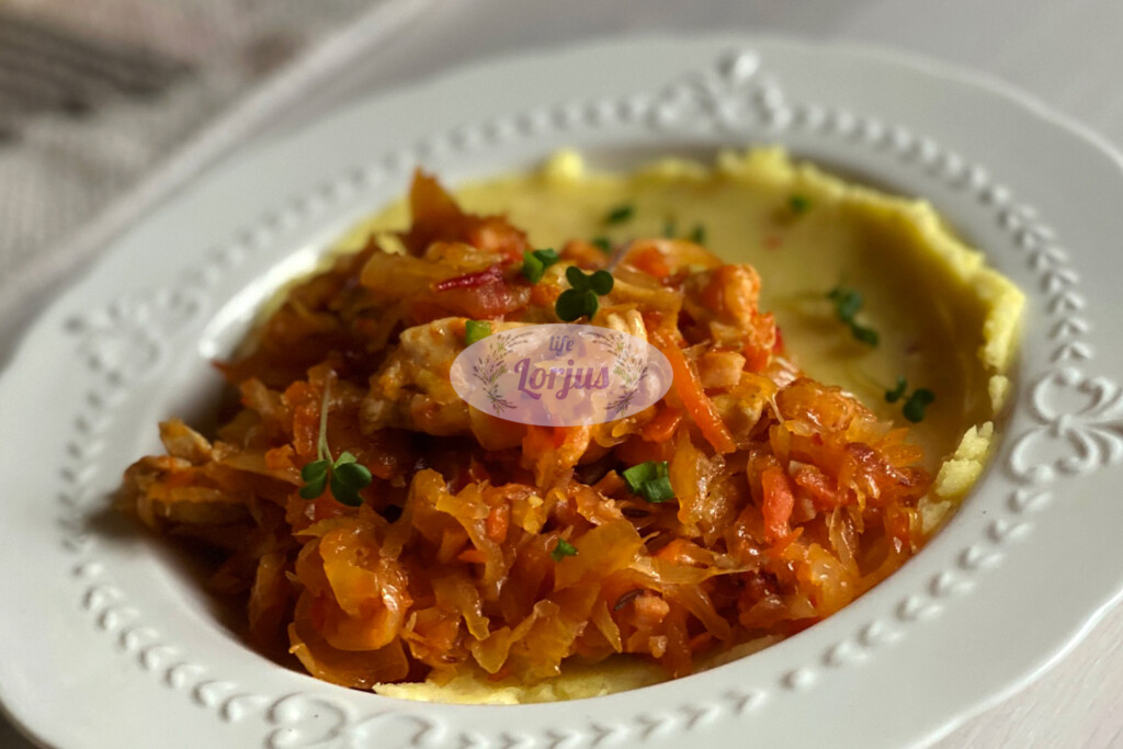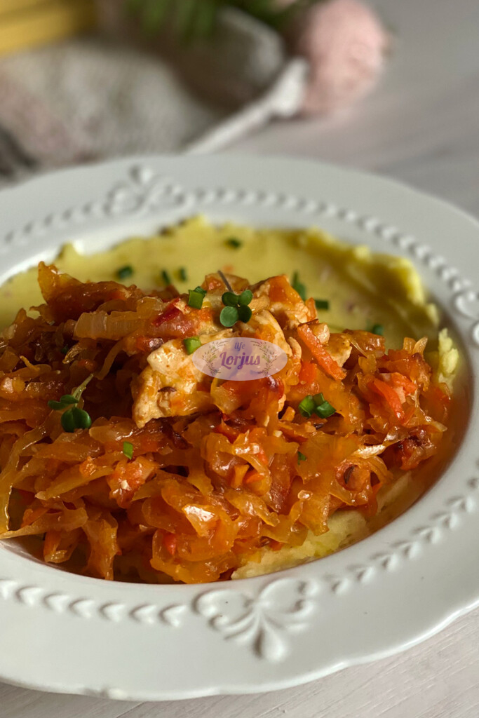Skani idėja pietums – troškinti rauginti kopūstai su vištiena.