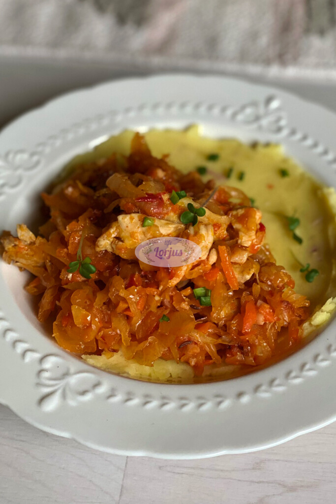 Troškinti rauginti kopūstai su vištiena