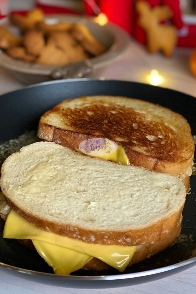 - Imame batono riekeles, dedame lydyto “Čederio” sūrio riekeles.
