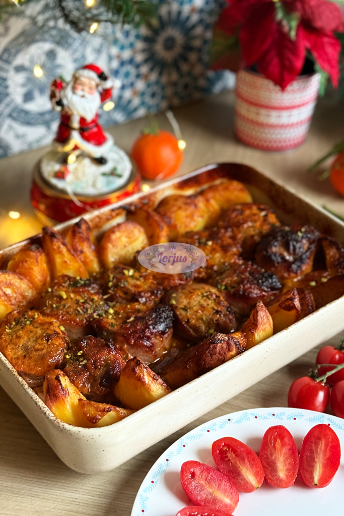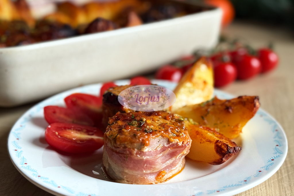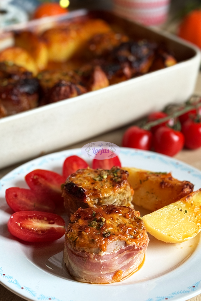 Šis vieno indo patiekalas – sultingi kiaulienos išpjovos suktinukai su šonine ir bulvėmis visada pasižymi ypatingu skoniu. Minkštutėlė kiaulienos išpjova ir auksinės bulvytės. Visi igredientai kepdami kartu taip skaniai susidraugauja, kad skonis tiesiog pranoksta įdėtas pastangas ir gaunasi minimalus pasiruošimas, bet maksimalus rezultatas.