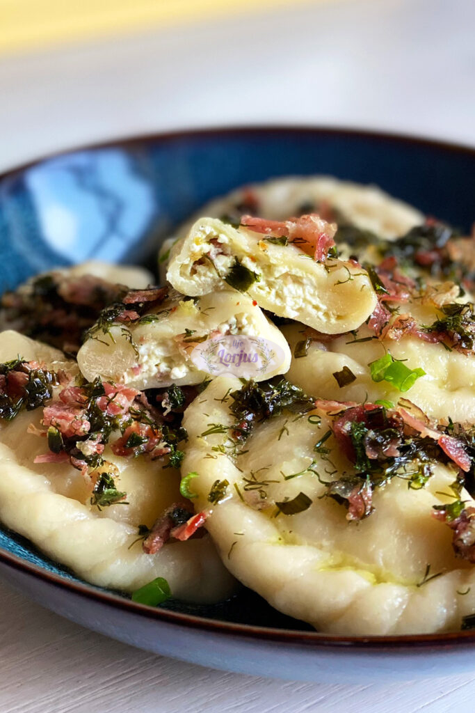- Virtiniai su šoninės ir varškės įdaru paruošti, patiekiu su mėgiamu padažu ar tiesiog grietine, skanaus!