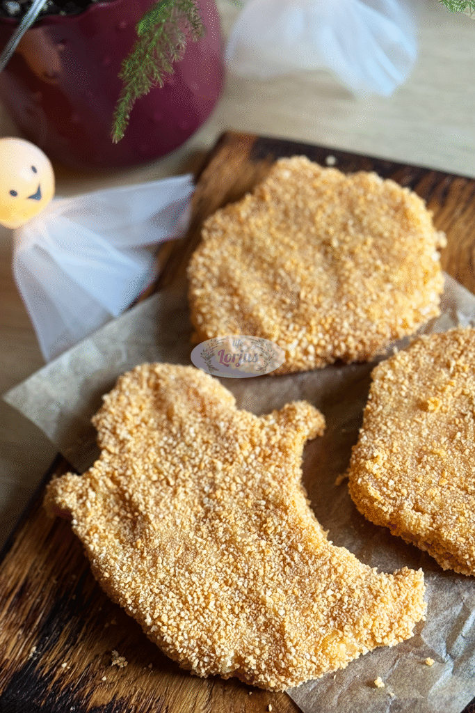Dar viena baisiai skani Helovino idėjų – vištienos ir sūrio kepsneliai kepti orkaitėje.